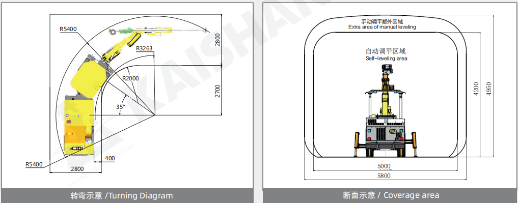 • Balanced layout and the articulated chassis of four-wheel drive ensure the flexible,fastand safe driving in the narrow tunnel;
