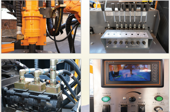 鉆車的行走、推進、回轉(zhuǎn)、集塵及角度調(diào)整等動作均采用液壓驅(qū)動,爬坡能力強,性能穩(wěn)定;