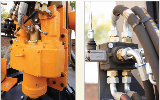 鉆車的行走、推進、回轉、集塵及角度調整等動作均采用液壓驅動,爬坡能力強,性能穩定;